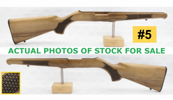 These stocks are not museum quality, they are a nice unique slab of wood with “Production Quality” work done to change a slab wood into a “Consumer Grade” rifle stock. Thereโ€™s a lot of handling and travel between Rugerโ€™s stock producer and us; the manufacturer sends these to Ruger in New Hampshire, where they are installed on new rifles, boxed, shipped to a US distributor, who then ships to us in Indiana where we disassemble the rifles and list their parts.