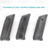 There is some variation in appearance between grips sets depending on which color, gray or black, is on the outermost layer of plastic, but they all look fairly similar. See pictures for details.