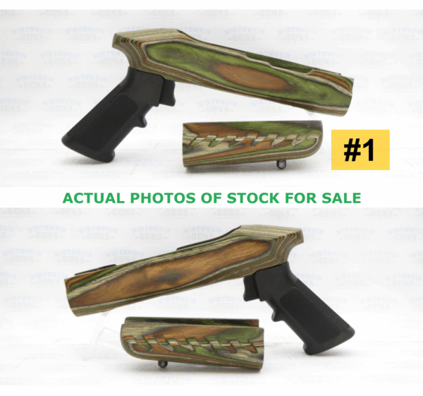 This Stock COMES AS PICTURED, has some marks from grips previously installed and a small chip on the forearm