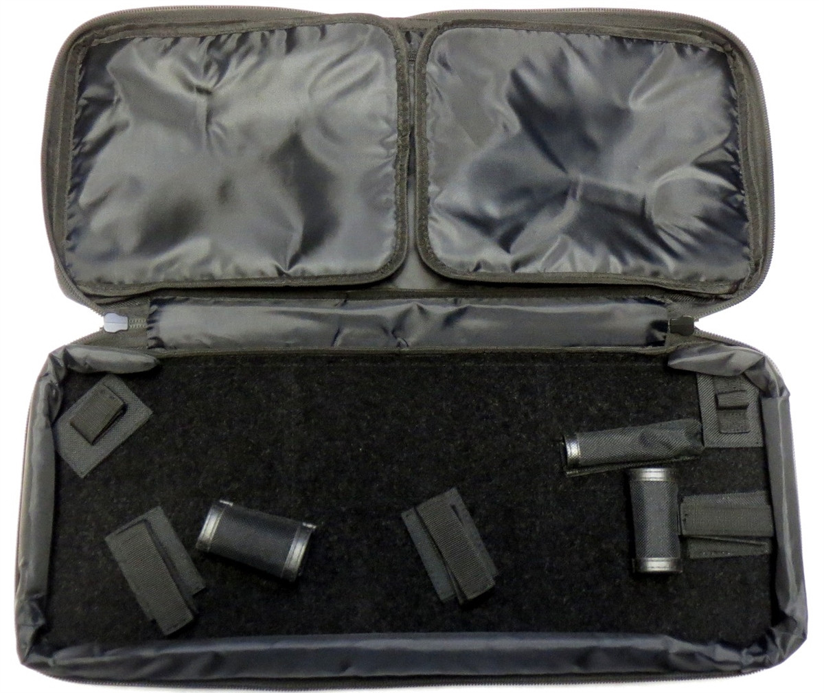 Has 3 LARGE zippered pockets inside and padded covers for them that fold out