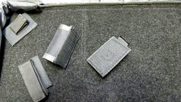 Several attaching pieces inside and the whole bottom is Velcro type material.