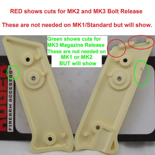 If your Mark 1 pistol has the magazine follower button of the Right side, these will NOT fit.