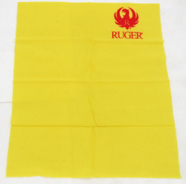 12″ x 14″ Yellow cotton cloth with Ruger logo and is impregnated with food grade silicone. This cloth helps protect your firearm from rust due to exposure to the weather, moisture, and finger prints.