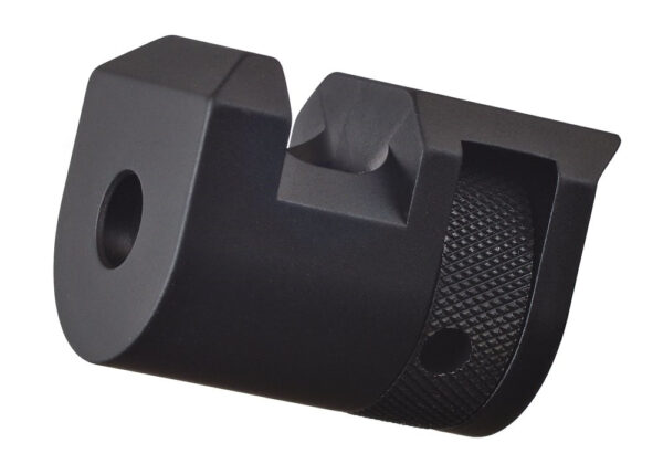 Matches the LLV profile, so works on the Volquartsen Scorpion or Black Mamba, CNC-machined from a solid billet and finished for durability. Uses a knurled nut to tighten on muzzle threads. Pin wrench for installation is included.