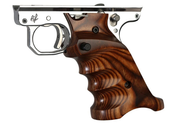 Target grips feature thumbrest, heelrest and finger grooves. Designed to give the shooter a relaxed, steadier hold. CNC-machined from laminated wood and available in a variety of colors. Includes four-allen head screws. MKIII model also features an extended magazine release.